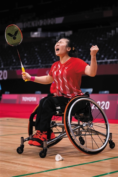 当日,在羽毛球女子单打WH1小组赛中,中国选手尹梦璐以2∶0战胜韩国对手。