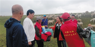 本报讯 (记者 张志忠) 4日,市长城文化旅游协会的志愿者和爱心人士来到左云县威鲁堡村北月华池,为长城沿线30多名牛羊倌送去了代表“长城保护志愿者” 的红马甲和慰问品。