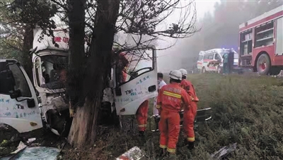 本报讯 (记者 龙中华) 5日6时许,在浑源县西坊城镇附近的336国道,一辆快递小型货车撞到路边树上,驾驶室严重变形,司机被困。浑源迎宾路消防救援站迅速赶赴现场救援,经过十几分钟努力,成功将被困司机救出。