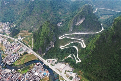 近年来,都安瑶族自治县各族党员干部群众凭着“雄心征服千层岭,壮志压倒万重山”的都安精神,不断加大交通基础设施建设,在崇山峻岭间开山凿石,建设一条又一条脱贫路、振兴路、小康路。