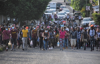 9月4日,在墨西哥恰帕斯州塔帕丘拉,“移民大篷车”队伍向美国进发。