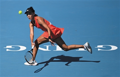 9月8日,在陕西杨凌举行的第十四届全国运动会网球项目女子单打半决赛中,天津队王蔷以2∶0战胜安徽队朱琳,晋级决赛。图为天津队王蔷在比赛中回球。