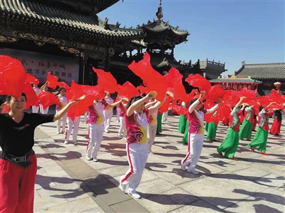 本报讯 (记者 崔莉英) 平城区2021年“免费送戏下乡一百场”惠民演出活动于9日启动。连日来,古城内纯阳宫广场上歌嘹亮、舞翩跹、戏曲悠扬,丰富多彩的活动吸引着众多市民、游客观看。昨日,云路街还有人们喜闻乐见的舞狮、锣鼓、旱船等社火表演,让古城成为欢乐大舞台。同时,文艺表演还在多个社区展开。