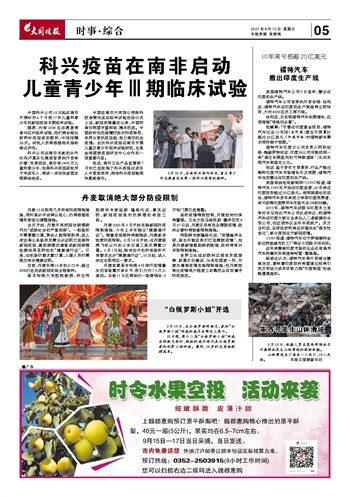 科兴疫苗在南非启动 儿童青少年Ⅲ期临床试验