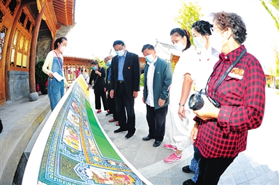 从灶头开始,甘露寺、凤仪亭、三顾茅庐、千里走单骑、三让徐州、反西凉、定军山、空城计、群英会;下面的图案则是十二生肖,每两个属相间还插入牡丹、荷花、菊花、竹、小鸟、仙鹤、蝴蝶、蝈蝈等,当这幅由刘希明创作的炕围画徐徐展开时,在场的人啧啧称赞。“真是和我姥姥家的炕围画一样,让人想起了小时候。”9月1日,在平城区新时代文明实践中心院里,70岁的李国英告诉记者,她从小在姥姥家长大,姥姥家炕围则是《二十四孝》。过去孩子们还不会下地行走时,老人们就沿着炕围子,把画上的故事一则一则地讲给他们听,无形中就接受了一种文化启蒙。