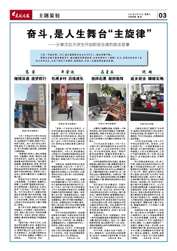 刚刚走出象牙塔的青春学子,面对激烈的职场竞争,会有怎样的个人选择?近日,本报记者采访了多位大学毕业生,记录下他们不负韶华、直面现实,开启人生新旅程的励志故事。