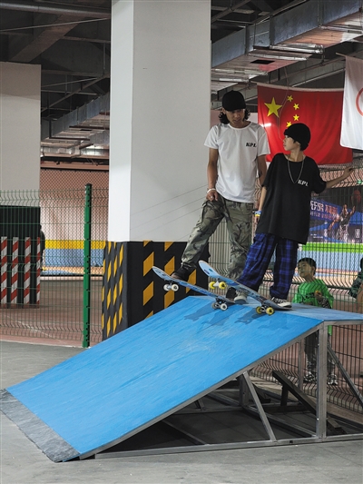记者日前见到王鹏时,他正在永泰门广场和他的滑板俱乐部成员开展自由练习,几名教练在为小学员教授课程。“加油,别灰心!”“做得很好!”……王鹏说,不断挑战自己,才是玩滑板的真谛。对于滑板运动来说,摔跤是家常便饭,重要的是不能害怕摔跤,同时要找到摔跤的原因,从中吸取经验。记者看到,队员摔倒后,只要鼓足勇气再次站到滑板上,就会收获队友的掌声和鼓励;如果有人学会了一个新动作,队友们就会拍手、握拳、对撞,对他表示认可和祝贺。