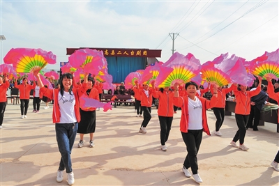 27日,新荣区卢家窑村人头攒动,彩旗飘扬,当地农民满怀激情、载歌载舞庆丰收、迎国庆,舞蹈、戏曲等精彩纷呈的文艺节目轮番登场,引得观众阵阵掌声。该村还通过农产品展示、农事分享、技能交流等活动,展示丰收成果,营造喜庆氛围。