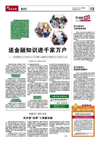 ~~~—邮储银行大同市分行开展“金融知识普及月”活动小记