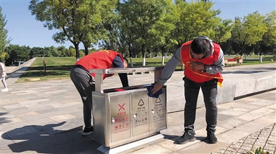 本报讯 (记者 杨昱郁) 擦拭果皮箱、长条椅,劝阻不文明行为……昨日,市退役军人“奉献者”志愿服务队20余名志愿者来到文瀛湖生态公园,开展“与祖国同庆,与家乡共美”文明公益活动,用别样的方式为祖国庆生。
