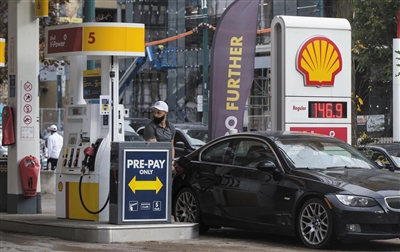 10月16日,在加拿大多伦多的一处加油站,一名男子正在为汽车加油。