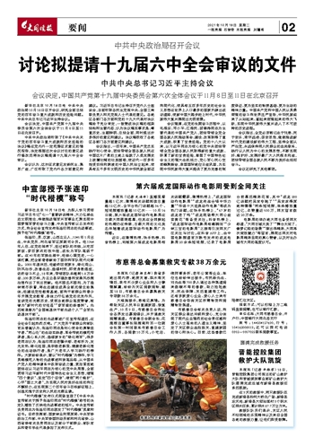 中共中央政治局召开会议~~~中共中央总书记习近平主持会议 会议决定,中国共产党第十九届中央委员会第六次全体会议于11月8日至11日在北京召开