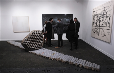 ◀ 10月20日,参观者在法国巴黎临时大皇宫举行的2021巴黎当代艺术博览会预展上参观。