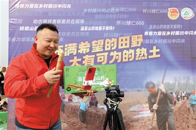 当日,主题为“青力支农 联助振兴”的河南省青年联合会助力乡村振兴直播带货活动在温县武德镇苏王村举行。当地邀请来自全国各地怀药经销商、新媒体主播等60余人在采挖现场共同推介、销售温县铁棍山药,助农惠农。