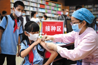 近日,海口市全面启动3到11岁人群新冠疫苗接种工作,医护人员走进校园,为小朋友们接种疫苗。
