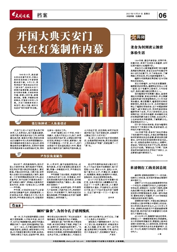 尹作滨看了设计图纸,知道是开国大典用在天安门上的,非常激动,对灯笼的具体要求进行反复思考后,自信地拍着胸脯对钟灵说:“请放心,我一定能把灯笼做好! ”