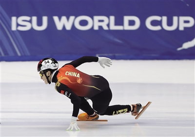 10月31日,在日本名古屋举行的2021-2022国际滑联短道速滑世界杯名古屋站男子1000米A组决赛中,中国选手任子威以1分26秒297的成绩获得冠军。图为任子威在比赛中。