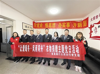 为积极响应平城区新旺街道发出的捐助倡议,日前,晋商银行大同分行开展“让爱暖冬,风雨同舟”衣物捐赠主题党日活动,号召全体党员干部积极奉献爱心,将关怀和善意传递到需要帮助的人手中。