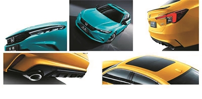 广汽本田银隆4S店市场经理李文俊对记者说,9月28日,广汽本田厂家正式发布了“型格”轿车即将上市的信息,新车名字寓意格领潮流之先。在外观方面,“型格”相比新“思域”拥有更强的运动气息。前脸部分配备了分体式格栅,其中上格栅采用了六边形造型设计,内部有黑色蜂窝网状结构包裹,搭配两侧狭长的前大灯,有效地提升了车头的张力。而位于前包围区域的下格栅则呈现出梯形造型,内部通过黑色横条点缀。此外,前包围外侧还通过凌厉的线条勾勒出“八”字形空气导流槽,进一步提升了整车的运动气息。
