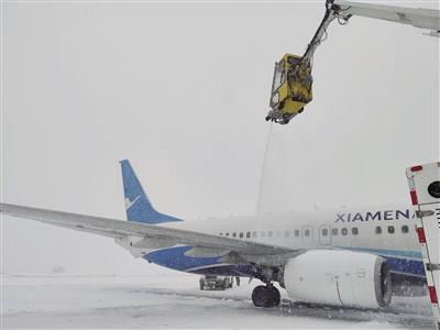 11月7日,天津滨海国际机场工作人员进行除雪保障工作。