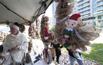 11月6日,人们在加拿大多伦多举办的圣诞艺术集市上选购装饰品。