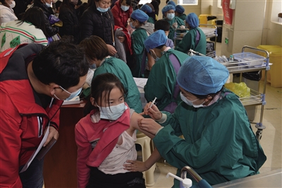 本报讯 (记者 高燕) 11月2日,我市启动3至11岁人群新冠疫苗接种工作,以进一步筑牢群体免疫屏障。7日,尽管我市天气较冷,雪后出行也很不方便,但这并未影响众多家长带孩子接种新冠疫苗。记者在平城区部分接种点看到,接种现场格外热闹,到处都是小朋友活泼的身影。