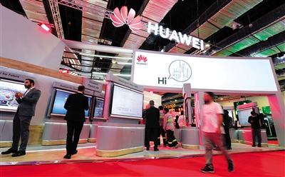 11月7日,人们在埃及开罗举办的信息通信技术展现场参观华为展台。