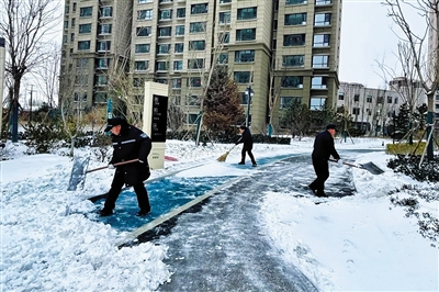 下雪是景,除雪是情,大雪守护着大地,而鸿泽物业人守护着枫林逸景的业主们。