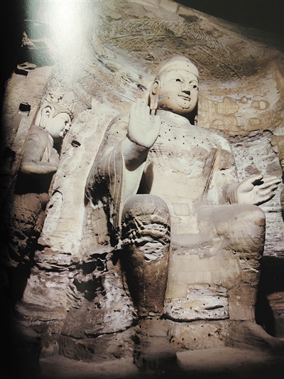 据了解,第1窟、第2窟为双窟,位于云冈石窟东端。第1窟中央雕出两层方形塔柱,仿木构屋顶塔檐,柱子的四面开龛,后壁立像为弥勒佛。第2窟中央为一方形三层塔柱,每层四面刻出三间楼阁式佛龛。第3窟分前后室,前室上部中间凿出一个弥勒窟室,后室雕有面貌圆润、神态超然、花冠精细、衣纹流畅的三尊造像,为西方三圣。第4窟是塔庙窟,一门两窗,内壁佛像风化比较严重。