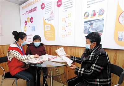 图为11日下午,晨馨花园助老服务站工作人员给老人们讲解“六助”服务。