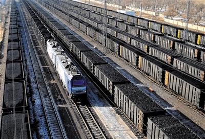 凛凛冬日,一列列满载煤炭的重载列车在山西省大同市大秦铁路湖东站集结后,开往秦皇岛、曹妃甸等港口。