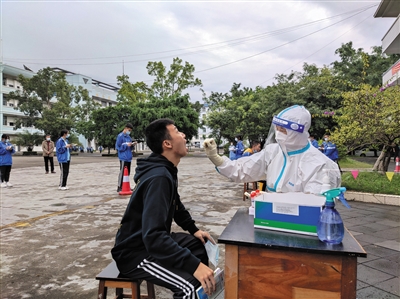 11月13日,瑞丽市第一民族中学组织复学学生进行核酸检测。
