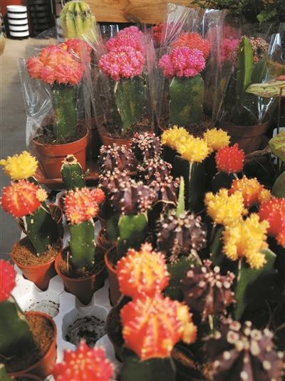 本报讯 (记者 李兴华) 色彩缤纷的仙人掌、花团锦簇的大蕙兰、花香四溢的杜鹃,尽管户外落叶萧萧,花卉市场内却是一派春意盎然。记者15日走访市场了解到,因冬季室内温暖干燥,不少市民选择买盆鲜花装饰房间,不仅美观还增加居室空气湿度。