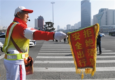 无论严冬酷暑,在山西太原的街头,人们总会看到一位举着牌子、拿着小旗的老人,不厌其烦地提示行人遵守规则,安全过马路。这位叫马金明的80岁老人,坚持义务疏导交通已经11年,被人们亲切地称为“雷锋爷爷”。