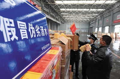 11月18日,工作人员对即将被销毁的假冒伪劣食品进行核查。