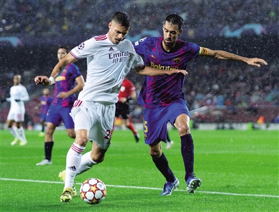 11月23日,在2021-2022赛季欧洲足球冠军联赛E组第五轮比赛中,西甲巴塞罗那队主场以0∶0战平葡超本菲卡队。