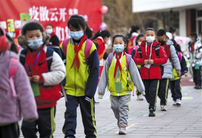 11月25日,宁夏银川市兴庆区第四小学学生重返校园。