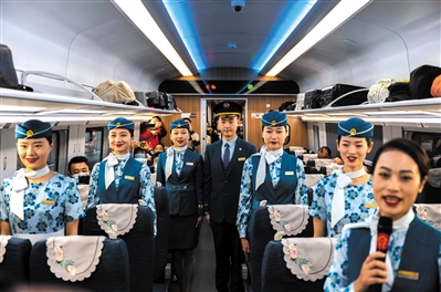 当日上午,中国铁路昆明局集团有限公司昆明客运段为即将开行的中老铁路而设计的列车员制服“丝路花语”首次亮相。据介绍,本次发布的列车员制服以“丝路花语”为主题,以“孔雀蓝”为主色调,搭配牡丹花、山茶花等元素。中老铁路全长1000多公里,北起云南省昆明市,南至老挝首都万象。
