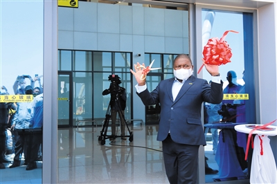 11月29日,在莫桑比克加扎省机场,莫桑比克总统纽西在启用仪式上剪彩。