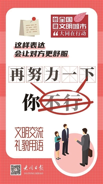 “文明”和“礼貌”是两个极易被关联的词语,说话直来直去,想什么说什么,有时候是好的,但有些场合若说话太直,很可能会影响到人际关系。委婉含蓄的语言,更容易被别人接受,也更能表现出对别人的尊敬和自身的文明礼貌。人在说话,话在塑人,你是什么样的人,由你自己“说”了算。
