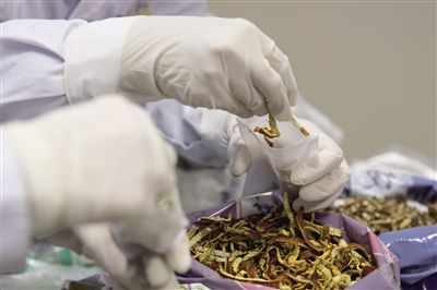 12月7日,哈尔滨市道里区中医医院工作人员在调配中药代茶饮。