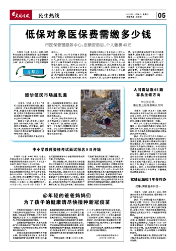 ~~~市医保管理服务中心:定额资助后,个人缴费40元