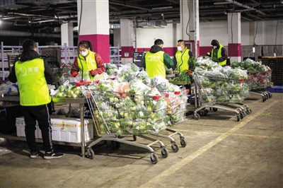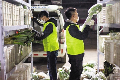 打开一些线上APP或小程序,网上的菜品、水果、肉禽、粮油、蛋类、调料等琳琅满目,种类繁多,价格适中,加上平台发放的“满减”优惠券以及限时秒杀,很受消费者欢迎。采访中,业内营销人员黄超告诉记者,由于线上平台采购、销售属于“点对点”直采直销模式,每天要更换不同菜品做促销活动,部分菜品比线下市场的价格还低。前段时间,受菜价上涨等因素影响,线上下单量逐日递增。一般情况,消费者下单后,分拣员通过打包分拣,投线员根据配送线路投放到冷链货架,配送员于次日将菜品送达自提点,有的实体超市可做到当日送菜上门。