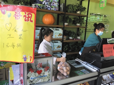 记者在民和社区“菜篮子”直营店看到,店内陈列了30余种生活必需品,吸引了不少居民光顾。一则温馨提示写道:社区工作人员和志愿者可以为行动不便老年人免费提供送货上门服务,让社区老年人感受特别的亲情与温暖。