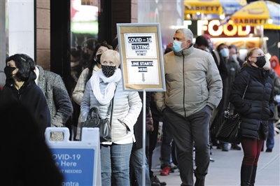12月13日,人们在美国纽约排队等待新冠检测。