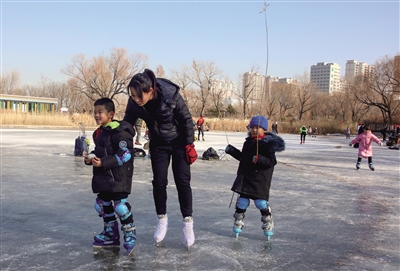 12月的一个周日下午,记者在儿童公园西湖冰场看到,伴着现场播放的欢快音乐,众多滑冰爱好者在冰面上掠风滑行,其潇洒的身姿带来飞一般的感觉,令人神往。湖面上还有不少家长带着孩子滑冰车,欢笑声回荡在冰封的湖面,让寒冷的冬日里别具一番浪漫激情。