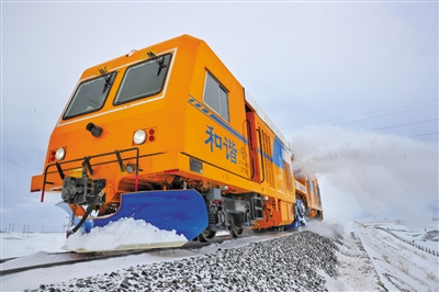 升级版极寒轨道除雪车在铁路线上清雪(12月14日摄)。