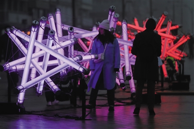 在比利时,冬季白昼时长较短,入夜后的灯光秀是广受人们喜爱的节日活动。近日,比利时西北部的海滨城市克诺克海斯特举办了一场灯光艺术节。艺术家们以“音乐”为主题设计的灯光艺术装置点缀城市多处,在冬夜为人们带来创意十足的视觉盛宴。