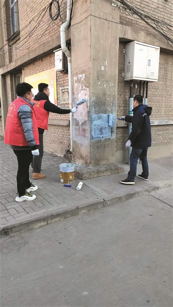 本报讯 (记者 刘剑) 为进一步深化文明城市创建工作,云冈区西花园街道槐园社区新时代文明实践站工作人员、网格员、志愿者等日前深入辖区内各小区捡拾垃圾、铲除小广告、清运石块……