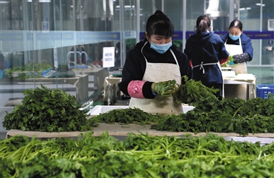 陕西米禾供应链管理股份有限公司的工作人员在分拣蔬菜(12月19日摄)。